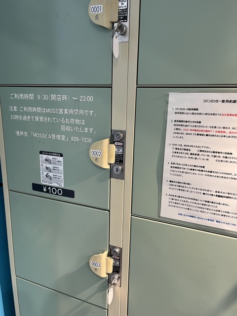 MOSSビル1階にあるコインロッカー(100円かかります。100円は帰ってきません。注意。)